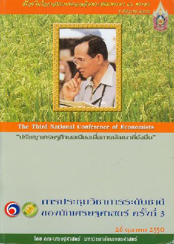 การประชุมวิชาการระดับชาติของนักเศรษฐศาสตร์. ครั้งที่ 3 เรื่อง "ปรัชญาเศรษฐกิจพอเพียงเพื่อการพัฒนาที่ยั่งยืน" : 26 ตุลาคม 2550 ณ อาคารสารนิเทศ 50 ปี มหาวิทยาลัยเกษตรศาสตร์ / จัดโดยคณะกรรมการสถาบันการศึกษาด้านเศรษฐศาสตร์ 6 สถาบัน