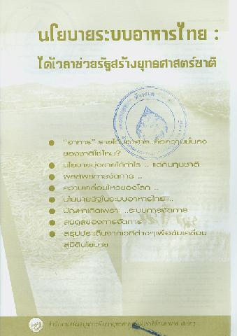 นโยบายระบบอาหารไทย : ได้เวลาช่วยรัฐสร้างยุทธศาสตร์ชาติ / สำนักงานสนับสนุนการพัฒนายุทธศาสตร์แห่งชาติด้านอาหาร