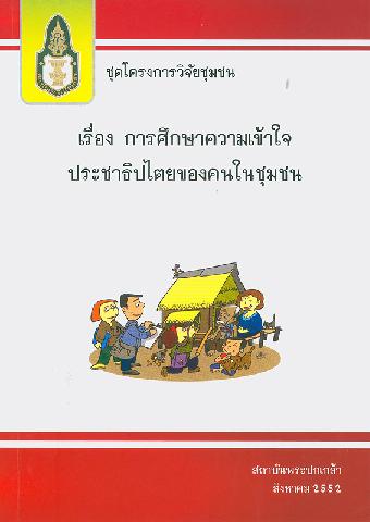ชุดโครงการวิจัยชุมชนเรื่องการศึกษาความเข้าใจประชาธิปไตยของคนในชุมชน / วิเวก หนูมาก และคณะ ; บรรณาธิการ ถวิลวดีบุรีกุล