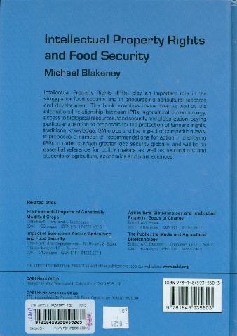 245 10 ^aIntellectual property rights and food security /^cMichael Blakeney