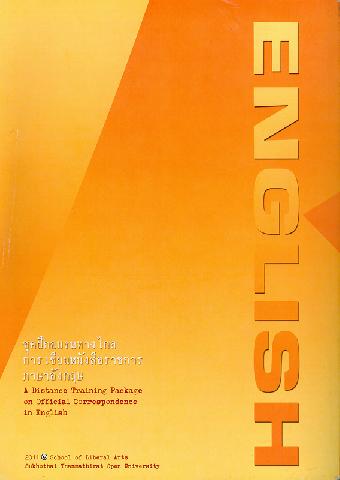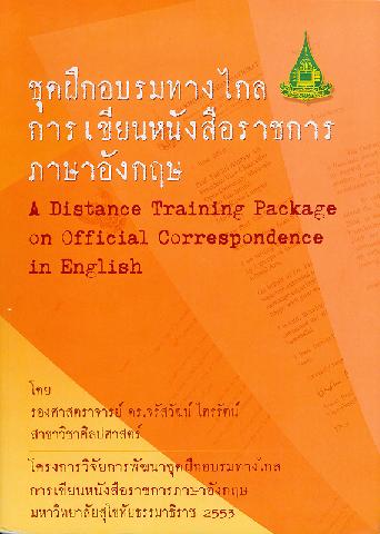 ชุดฝึกอบรมทางไกล เรื่อง การเขียนหนังสือราชการภาษาอังกฤษ มีวัตถุประสงค์เพื่อให้ความรู้เกี่ยวกับแก่ผู้ปฏิบัติงาน และผู้สนใจพัฒนาความรู้ ฝึกฝนทักษะการเขียน และเป็นคู่มือหรือแหล่งความรู้ในการปฏิบัติงาน และเพื่อเป็นแนวทางให้การปฏิบัติงานด้านการเขียนหนังสือราชการภาษาอังกฤษเป็นไปอย่างมีประสิทธิภาพและประสิทธิภาพและประสิทธิผล.