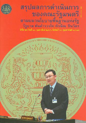สรุปผลการดำเนินการของคณะรัฐมนตรีตามแนวนโยบายพื้นฐานแห่งรัฐ : รัฐบาล พันตำรวจโท ทักษิณ ชินวัตร ปีที่สาม (วันที่ 26 กุมภาพันธ์ 2546 ถึงวันที่ 26 กุมภาพันธ์ 2547) / สำนักเลขาธิการคณะรัฐมนตรี