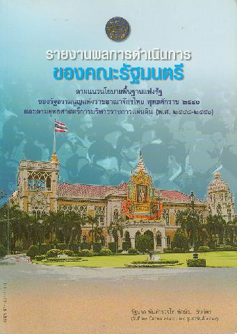 รายงานผลการดำเนินการของคณะรัฐมนตรี : ตามแนวนโยบายพื้นฐานแห่งรัฐของรัฐธรรมนูญแห่งราชอาณาจักรไทย และตามยุทธศาสตร์การบริหารราชการแผ่นดิน (พ.ศ.2548-2551) รัฐบาล พันตำรวจโท ทักษิณ ชินวัตร นายกรัฐมนตรี (วันที่ 23 มีนาคม 2548 - 24 กุมภาพันธ์ 2549) / [คณะกรรมการจัดทำรายงานแสดงผลการดำเนินการของคณะรัฐมนตรี]