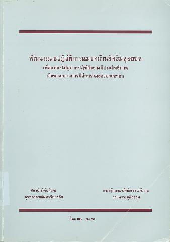 พัฒนาแผนปฏิบัติการแม่บทด้านสิทธิมนุษยชนเพื่อแปลงไปสู่ภาคปฏิบัติอย่างมีประสิทธิภาพด้วยกระบวนการมีส่วนร่วมของประชาชน / สถาบันวิจัยสังคม จุฬาลงกรณ์มหาวิทยาลัย, กรมคุ้มครองสิทธิและเสรีภาพ กระทรวงยุติธรรม