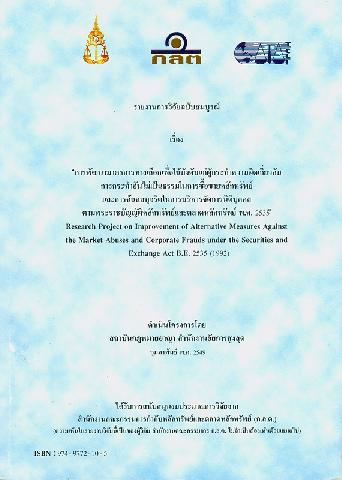 Research project on improvement of alternative measures against the market abuses and corporate frauds under the securities and exchange act B.E.2535 (1992)