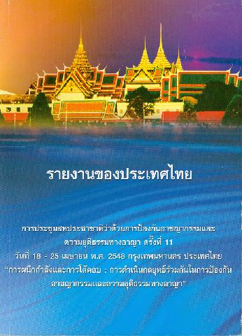 รายงานของประเทศไทย : การประชุมสหประชาชาติว่าด้วยการป้องกันอาชญากรรมและความยุติธรรมทางอาญา ครั้งที่ 11 วันที่ 18-25 เมษายน พ.ศ. 2548 กรุงเทพมหานคร ประเทศไทย "การผนึกกำลังและการโต้ตอบ : การดำเนินกลยุทธ์ร่วมกันในการป้องกันอาชญากรรมและความยุติธรรมทางอาญา"
