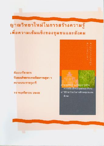 ญาณวิทยาใหม่ในการสร้างความรู้เพื่อความเข้มแข็งของชุมชนและสังคม : เอกสารประกอบการสัมมนาทางวิชาการ วันสมเด็จพระเทพรัตนราชสุดาฯ สยามบรมราชกุมารี มหาวิทยาลัยศรีนครินทรวิโรฒ วันพุธที่ 19 พฤศจิกายน 2546 [จัดโดย] มหาวิทยาลัยศรีนครินทรวิโรฒ