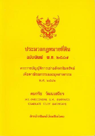ประมวลกฎหมายที่ดิน ฉบับพิมพ์ พ.ศ. 2547 พระราชบัญญัติการเช่าอสังหาริมทรัพย์เพื่อพาณิชยกรรมและอุตสาหกรรม พ.ศ. 2542 คมกริช วัฒนเสถียร