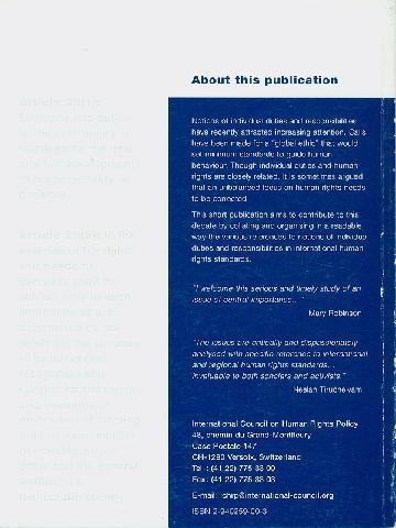 Taking duties seriously : individual duties ininternational human rights law : a commentary / [written by David Petrasek ; researched by Saul Takahashi]