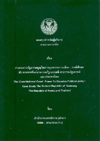 บทสรุปสำหรับผู้บริหารรายงานการวิจัยเรื่อง อำนาจศาลรัฐธรรมนูญในการยุบพรรคการเมือง : กรณีศึกษาประเทศสหพันธ์สาธารรัฐเยอรมนี สาธารณรัฐเกาหลีและประเทศไทย / โดย สำนักงานเลขาธิการวุฒิสภา