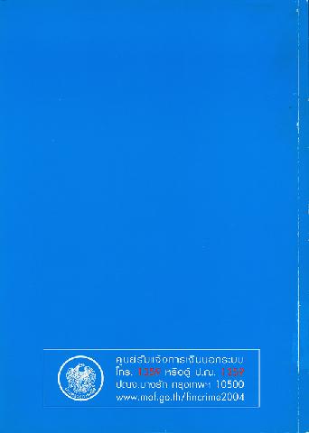 คู่มือพนักงานเจ้าหน้าที่ ตามพระราชกำหนดการกู้ยืมเงินที่เป็นการฉ้อโกงประชาชน พ.ศ. 2527 และพระราชบัญญัติการเล่นแชร์ พ.ศ. 2534 : ประกอบด้วย พระราชบัญญัติดอกเบี้ยเงินให้กู้ยืมของสถาบันการเงิน พ.ศ. 2523, ประกาศกระทรวงการคลังและกระทรวงมหาดไทย, ประกาศธนาคารแห่งประเทศไทย, คำสั่งกระทรวงการคลัง, หนังสือกระทรวงการคลัง, คำพิพากษา / จัดทำโดย กลุ่มงานป้องปรามการเงินนอกระบบ สำนักงานปลัดกระทรวงการคลัง