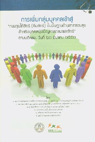 245 00 ^aการเพิ่มกลุ่มบุคคลเข้าสู่ "กองทุนให้สิทธิ (คืนสิทธิ) ขั้นพื้นฐานด้านสาธารณสุขสำหรับบุคคลผู้มีปัญหาสถานะและสิทธิตามมติ ครม. วันที่ 23 มีนาคม 2553/^cคณะทำงานพัฒนาคุณภาพชีวิต สาธารณสุขและคุ้มครองผู้บริโภค สภาที่ปรึกษาเศรษฐกิจและสังคมแห่งชาติ ; อนุกรรมการสิทธิมนุษยชนด้านชนชาติ ผู้ไร้สัญชาติ แรงงานข้ามชาติและผู้พลัดถิ่น สภาทนายความ ; ศูนย์ปฏิบัติการร่วมเพื่อแก้ไขปัญหาประชาชนบนพื้นที่สูง (คปส.) ; เครือข่ายชนเผ่าพื้นเมืองแห่งประเทศไทย ; เครือข่ายแพทย์โรงพยาบาทชายแดน ; มูลนิธิภิวัฒน์สาธารณสุขไทย