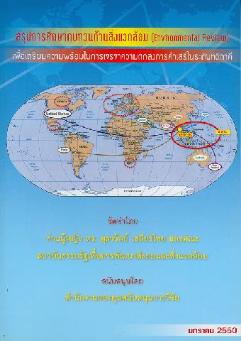 สรุปการศึกษาทบทวนด้านสิ่งแวดล้อม (environmental review) เพื่อเตรียมความพร้อมในการเจรจาความตกลงการค้าเสรีในระดับทวิภาคี จัดทำโดย สถาบันธรรมรัฐเพื่อการพัฒนาสังคมและสิ่งแวดล้อม ; คณะผู้วิจัย ท่านผู้หญิง สุธาวัลย์ เสถียรไทย ... [และคนอื่น ๆ]