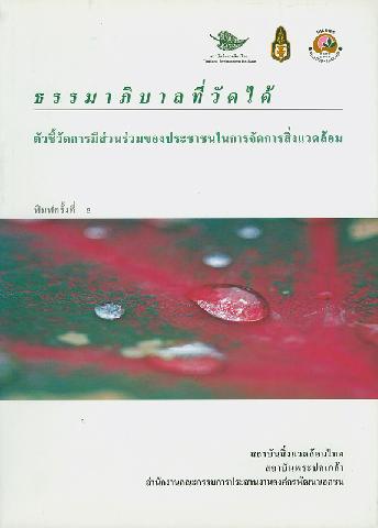 ธรรมาภิบาลที่วัดได้ : ตัวชี้วัดการมีส่วนร่วมของประชาชนในการจัดการสิ่งแวดล้อม [จัดทำโดย] ฝ่ายเมืองและสิ่งแวดล้อม สถาบันสิ่งแวดล้อมไทย ; คณะนักวิจัย, สมฤดี นิโครวัฒนยิ่งยง ... [และคนอื่นๆ]