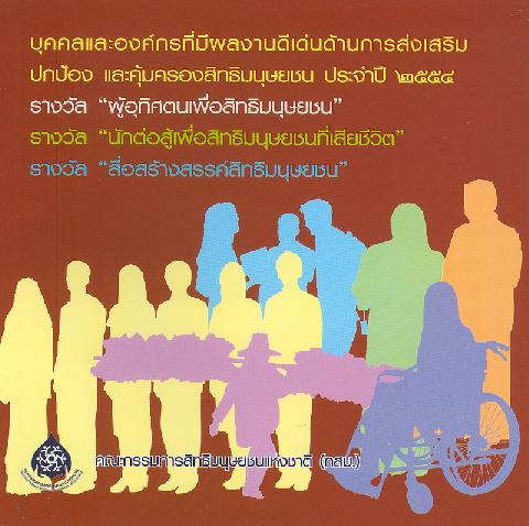 | 245 00 ^aบุคคลและองค์กรที่มีผลงานด้านการส่งเสริม ปกป้อง และคุ้มครองสิทธิมนุษยชนดีเด่น ปี 2554 /^cคณะกรรมการสิทธิมนุษยชนแห่งชาติ