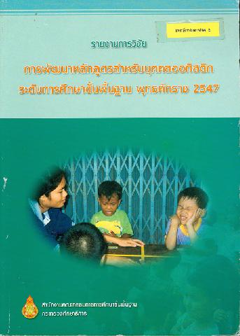 รายงานการวิจัย การพัฒนาหลักสูตรสำหรับบุคคลออทิสติกระดับการศึกษาขั้นพื้นฐาน พุทธศักราช 2547 ผู้วิจัย, เบญจา ชลธาร์นนท์ ; สำนักงานคณะกรรมการการศึกษาขั้นพื้นฐาน กระทรวงศึกษาธิการ
