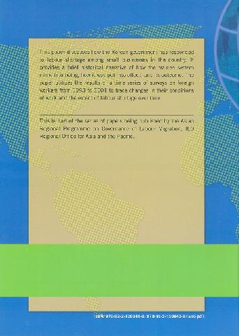 Summary: The paper provides a brief historical narrative of how the trainee system came into being, how it was put into effect, and its outcome. The paper utilizes the results of a time series of surveys on foreign workers from 1993 to 2001 to trace changes in their conditions of work and the extent of labour shortage over time.