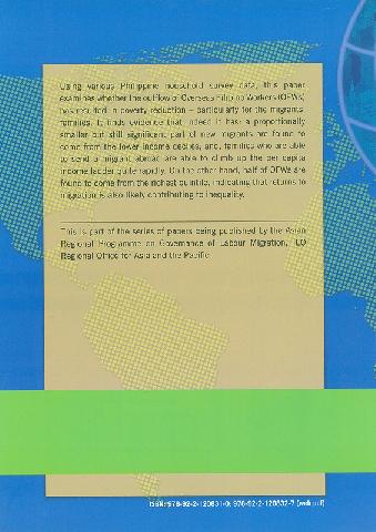 Summary: The paper finds evidence that it has a proportionally smaller but still significant part of new migrants are found to come from the lower income deciles; and families who are able to send a migrant abroad are able to climb up the per capita income ladder quite rapidly. On the other hand, half of OFWs are found to come from the richest quintile, indicating that returns to migration is also likely contributing to inequality.