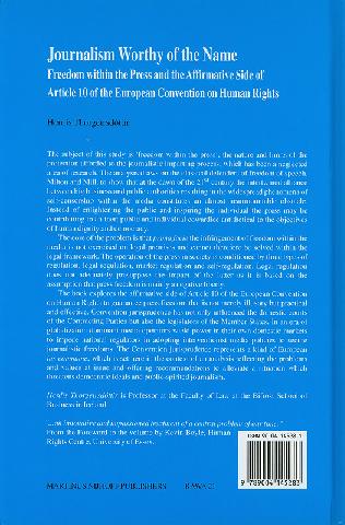 Contents: The European Convention and its public watchdog -- Article 10 and the press -- The democratic right to receive -- Opinion, hournalism and dignity -- The vital role of imparting -- Freedom within the media : the dilemma of an Iron Cage -- The Proprietor's position -- The political nature of advertising -- Self-regulation contested -- Journalism worthy of the name -- Affirmative action on the basis of Article 10.