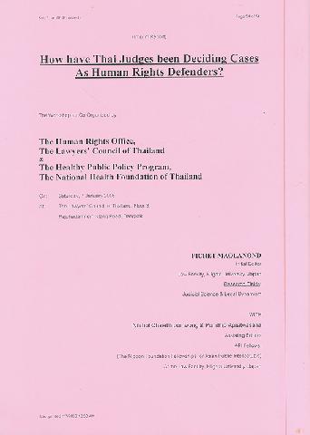ตุลาการไทยเป็น Human rights defenders อย่างไรบ้างในการตัดสินคดี? สำนักงานสิทธิมนุษยชน สภาทนายความ ; บรรณาธิการ พิเชษฐ์ เมาลานนท์