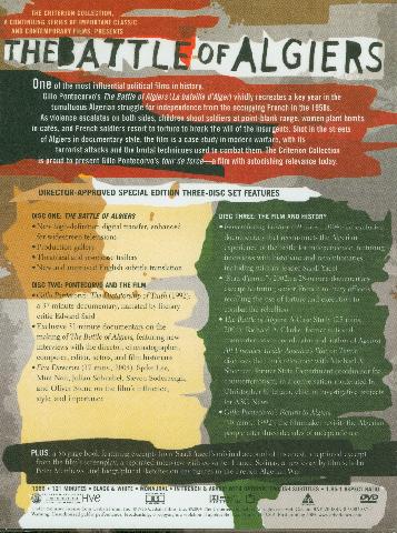 | 245 04 ^aThe battle of Algiers^h[videorecording] /^cdirected by Gillo Pontecorvo ; written by Gillo Pontecorvo, Franco Solinas