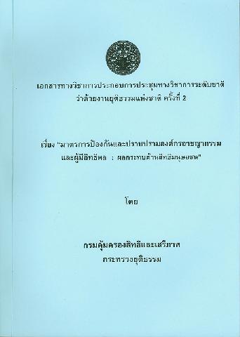 246 30 ^aการประชุมทางวิชาการระดับชาติว่าด้วยงานยุติธรรม ครั้งที่ 2, 6-7 กันยายน 2547 ศูนย์การประชุมอิมแพ็ค เมืองทองธานี