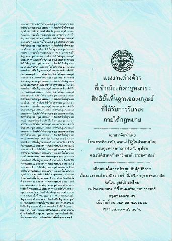 แรงงานต่างด้าวที่เข้าเมืองผิดกฎหมาย : สิทธิขั้นพื้นฐานของมนุษย์ที่ได้รับการรับรองภายใต้กฎหมาย โครงการศึกษาปัญหาคนไร้รัฐในประเทศไทย