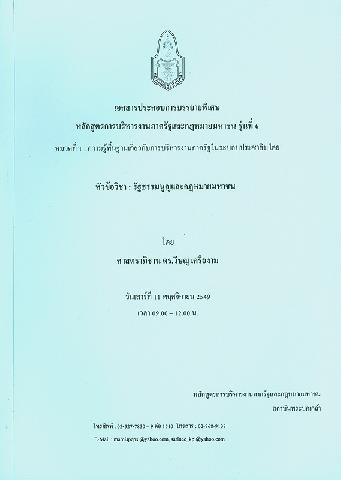 500 ^aเอกสารประกอบการบรรยายพิเศษ หลักสูตรการบริหารงานภาครัฐและกฎหมายมหาชน รุ่นที่ 6 หมวดที่ 1 : ความรู้พื้นฐานเกี่ยวกับการบริหารงานภาครัฐในระบอบประชาธิปไตย หัวข้อวิชา : รัฐธรรมนูญและกฎหมายมหาชน วันเสาร์ที่ 11 พฤศจิกายน 2549 เวลา 09.00 - 12.00 น.