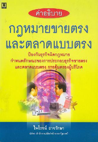 คำอธิบายกฎหมายขายตรงและตลาดแบบตรง : ป้องกันธุรกิจผิดกฎหมาย กำหนดลักษณะของการประกอบธุรกิจขายตรงและตลาดแบบตรง การคุ้มครองผู้บริโภค / ไพโรจน์ อาจรักษา