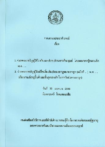 การเสวนาประชาพิจารณ์ เรื่อง ร่างพระราชบัญญัติป้องกันและปราบปรามการค้ามนุษย์ โดยเฉพาะหญิงและเด็ก พ.ศ.... ร่างพระราชบัญญัติแก้ไขเพิ่มเติมประมวลกฎหมายอาญา (ฉบับที่... ) พ.ศ. ... (เรื่องเกณฑ์อายุขั้นต่ำและขั้นสูงของเด็กในการรับผิดทางอาญา) วันที่ 23 เมษายน 2546 ห้องราชเทวี โรงแรมเอเชีย / สำนักงานส่งเสริมสวัสดิภาพและพิทักษ์เด็ก เยาวชน ผู้ด้อยโอกาส คนพิการและผู้สูงอายุ กระทรวงการพัฒนาสังคมและความมั่นคงของมนุษย์