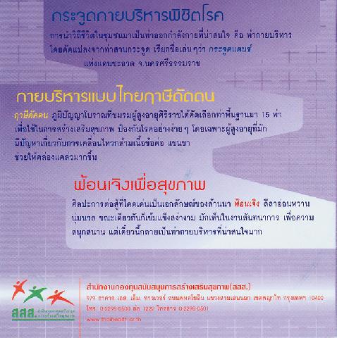 505 ^aกระจูดกายบริหารพิชิตโรค --^tกายบริหารแบบไทยฤาษีดัดตน --^tฟ้อนเจิงเพื่อสุขภาพ