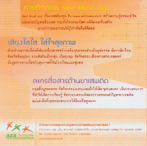 505 0 ^aค่ายดิจิตอล Sex must say -- ^tเสียงใสใส ใส่ใจสุขภาพ -- ^tละครสื่อสาร ต้านยาเสพติด