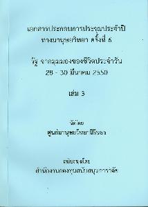 เอกสารประกอบการประชุมประจำปีทางมานุษยวิทยา ครั้งที่ 6 : รัฐ จากมุมมองของชีวิตประจำวัน, 28-30 มีนาคม 2550 เล่ม 3 จัดโดย ศูนย์มานุษยวิทยาสิรินธร