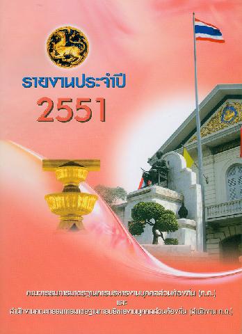 รายงานประจำปี 2551 คณะกรรมการมาตรฐานการบริหารงานบุคคลส่วนท้องถิ่น (ก.ถ.) และสำนักงานคณะกรรมการมาตรฐานการบริหารงานบุคคลส่วนท้องถิ่น (สำนักงาน ก.ถ.) / สำนักงานคณะกรรมการมาตรฐานการบริหารงานบุคคลส่วนท้องถิ่น