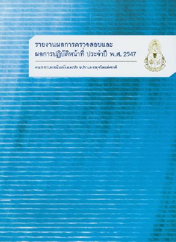รายงานผลการตรวจสอบและผลการปฏิบัติหน้าที่ ประจำปี 2547 คณะกรรมการป้องกันและปราบปรามการทุจริตแห่งชาติ / สำนักงานคณะกรรมการป้องกันและปราบปรามการทุจริตแห่งชาติ