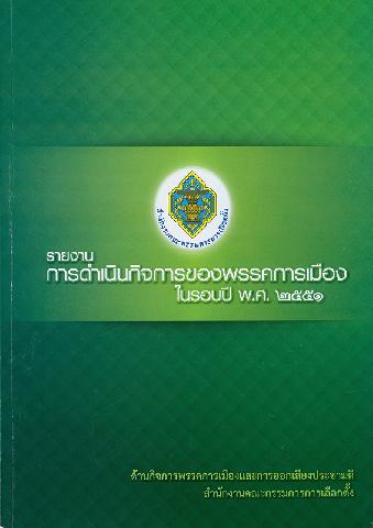 รายงานการดำเนินกิจการของพรรคการเมืองในรอบปี พ.ศ. 2551 ด้านกิจการพรรคการเมืองและการออกเสียงประชามติ สำนักงานคณะกรรมการการเลือกตั้ง