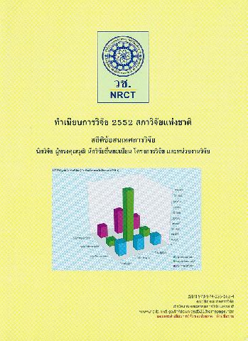 ทำเนียบการวิจัย 2552 สภาวิจัยแห่งชาติ : สถิติข้อสนเทศการวิจัย นักวิจัย ผู้ทรงคุณวุฒิ นักวิจัยขึ้นทะเบียน โครงการวิจัย และหน่วยงานวิจัย / สำนักงานคณะกรรมการวิจัยแห่งชาติ