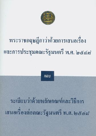 พระราชกฤษฎีกาว่าด้วยการเสนอเรื่องและการประชุมคณะรัฐมนตรี พ.ศ. 2548 และระเบียบว่าด้วยหลักเกณฑ์และวิธีการเสนอเรื่องต่อคณะรัฐมนตรี พ.ศ. 2548 / สำนักเลขาธิการคณะรัฐมนตรี