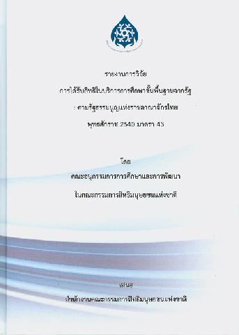 วิทยานิพนธ์และรายงานการวิจัย | LC213.3.T5 ร451 2549 Barcode: 31100100012122 | ►มุมสิ่งพิมพ์สำนักงาน กสม. | บนชั้น ขอยืม | |