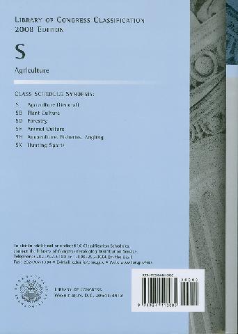 Library of Congress classification. S : Agriculture prepared by the Cataloging Policy and Support Office, Library Services