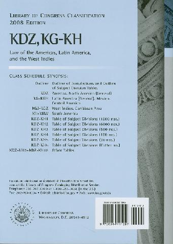 Library of Congress classification. KDZ, KG-KH : Law of the Americas, Latin America, and the West Indies prepared by the Cataloging Policy and Support Office, Library Services