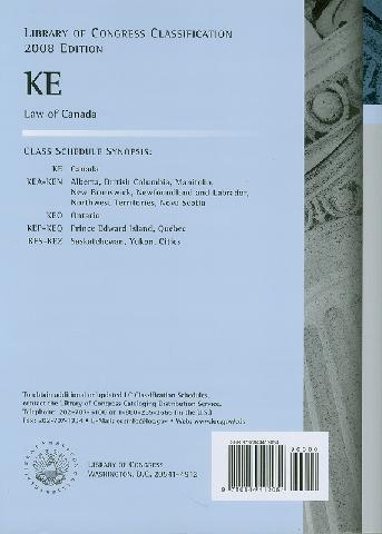 Library of Congress classification. KE : Law of Canada prepared by the Cataloging Policy and Support Office, Library Services