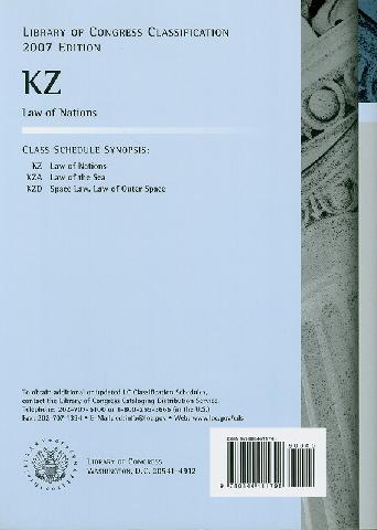 Library of Congress classification. KZ : Law of nations prepared by the Cataloging Policy and Support Office, Library Services