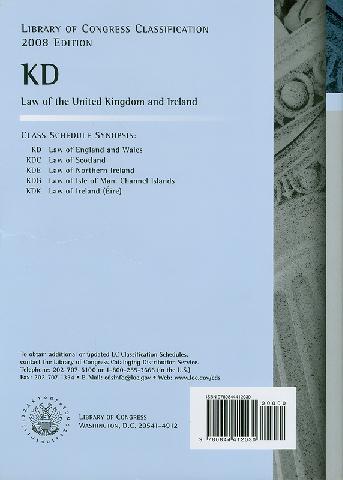 245 10 ^aLibrary of Congress classification. ^pKD : Law of the United Kingdom and Ireland /^cprepared by the Cataloging Policyand Support Office, Library Services