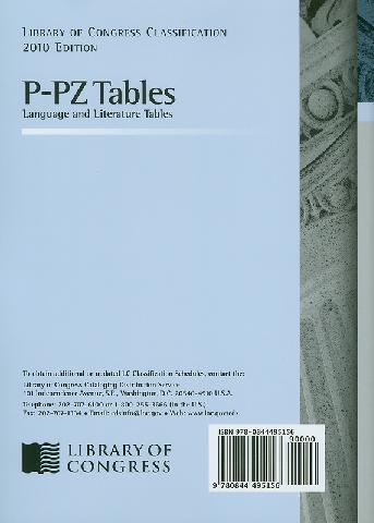 245 10 ^aLibrary of Congress classification. ^pP-PZ tables : Language and literature tables /^cprepared by the Policy and Standards Division, Library of Congress