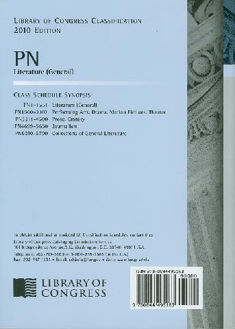 Library of Congress classification. PN : Literature (general) prepared by the Policy and Standards Division, Library of Congress