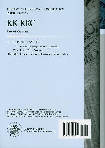 Library of Congress classification. KK-KKC : Law of Germany prepared by the Cataloging Policy and Support Office, Library Services