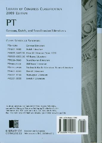245 10 ^aLibrary of Congress classification.^pPT : German, Dutch, and Scandinavian literatures /^cprepared by the Policy and Standards Division, Library Services