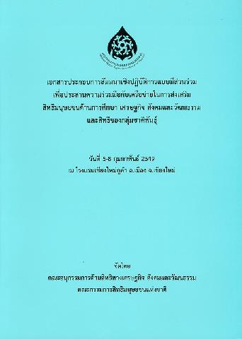 เอกสารประกอบการสัมมนาเชิงปฏิบัติการแบบมีส่วนร่วม เพื่อประสานความร่วมมือกับเครือข่ายในการส่งเสริมสิทธิมนุษยชนด้านการศึกษา เศรษฐกิจ สังคมและวัฒนธรรม และสิทธิของกลุ่มชาติพันธุ์ : วันที่ 5-8 กุมภาพันธ์ 2549 ณ โรงแรมเชียงใหม่ภูคำ อ.เมือง จ.เชียงใหม่/ คณะอนุกรรมการด้านสิทธิทางเศรษฐกิจ สังคมและวัฒนธรรม