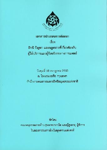 หนังสือทั่วไป | R727.45 ก5251 2550 c.2 Barcode: 31100100012689 | ►มุมสิ่งพิมพ์สำนักงาน กสม. | บนชั้น ขอยืม | |